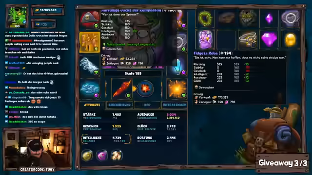 Nachdem technische Pannen den Anfang des Streams behinderten, wurden dennoch Giveaways durchgeführt. Im Fokus standen unter anderem Meinungen zu einem neuesten Spiel-Update, Tipps zur Optimierung von Ausrüstung und eine Dungeon-Challenge, bei der ein Preis leider verpasst wurde.