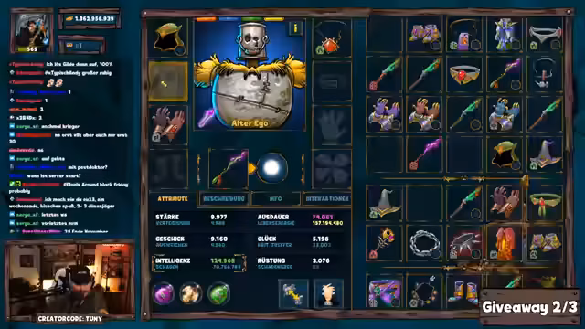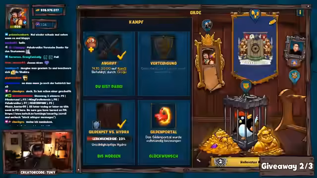 02:12:44Der Streamer kündigt ein neues Giveaway an und erklärt, dass das Keyword für die Teilnahme 'Kriegermeter' lautet. Nachdem er bereits mehrere Accounts durchgespielt hat und auf EU23 aktiv war, plant er nun die Giveaway-Durchführung. Er erwähnt, dass er trotz des vollen Terminkalenders nach der Polaris-Convention wieder Motivation zum Spielen gefunden hat und die Community nun die Chance hat, über das definierte Keyword an den Verlosungen teilzunehmen. Das Giveaway wird mit einem 20-Sekunden-Timer durchgeführt.