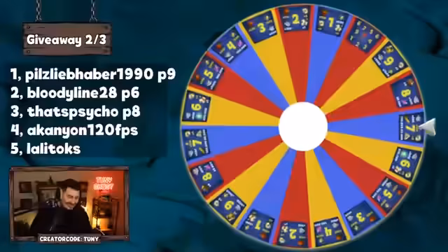 02:39:17Der Streamer führt das dritte Giveaway des Streams durch und nennt das Keyword 'Ventilatorenreparationsapparat'. Er bestimmt die Gewinner durch Zufall und verteilt verschiedene Pakete an Harteng, CLG Voodoo, Olivier Komar und Machine Killer. Anschließend startet er die wöchentliche Dungeon Challenge, bei der die Zuschauer ein bestimmtes Keyword innerhalb von 20 Sekunden schreiben müssen. Der Gewinner Chris Amino erhält die Chance, eine Wette abzuschließen, ob Athena in über oder unter drei Kämpfen besiegt wird.