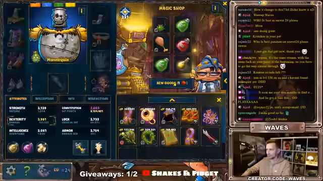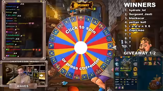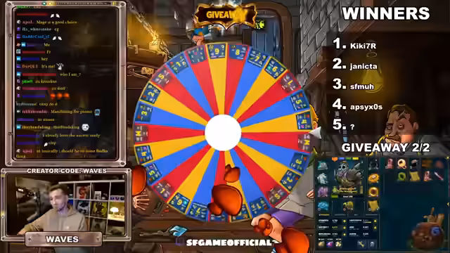 01:30:06Das Giveaway ist geschlossen, und der Streamer beginnt, die fünf Gewinner der zweiten Runde zu ziehen. Die Gewinner müssen anwesend sein und eine Frage beantworten, um ihren Gewinn zu bestätigen. Die Gewinner sind Kiki7R, Janikta, SF Moo, Epsixos und Kecksches Shakes. Kiki7R spielt drei Shakes-Charaktere täglich, Janikta bevorzugt Nekromanten und Dämonenjäger, SF Moo spielt seit 15,5 Jahren Shakes and Fidget, Epsixos' höchster Charakter ist ein Magier, und Kecksches Shakes glaubte nicht wirklich an seinen Gewinn. Die Gewinner erhalten verschiedene Pakete (A, 4, M, L, 8), die durch das Drehen eines Glücksrads bestimmt werden. Nach der Auslosung bedankt sich der Streamer bei allen Teilnehmern und notiert die Gewinnerliste.