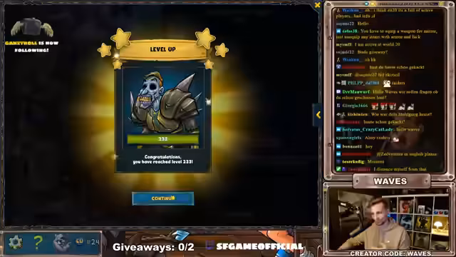 00:42:48Nachdem Level 230 erreicht wurde, wird das erste Giveaway des Tages gestartet. Der Streamer erklärt die Teilnahmebedingungen: Ein vorgegebenes Schlüsselwort muss einmalig in den Chat eingegeben werden, während ein einminütiger Timer läuft. Anschließend werden zehn Gewinner zufällig ausgewählt und müssen eine einfache Frage beantworten, um ihren Preis zu erhalten. Das Schlüsselwort für das erste Giveaway ist "!ninthtry", eine Anspielung auf die neun Versuche, die der Streamer benötigte, um das Herz der Finsternis zu erhalten. Zudem gibt der Streamer Ratschläge zur besten Verwendung von Pilzen: Priorität haben der 50%-Reittier (heute der VIP-Pass), das tägliche Spielen von 300 Durst und das Kaufen der Glücksmünze für das Glücksrad. Diese drei Kernpunkte bilden die Grundlage für einen guten Charakter, auch wenn man anfangs nicht das höchste Level erreicht, wie Spieler, die Tausende von Pilzen investieren.