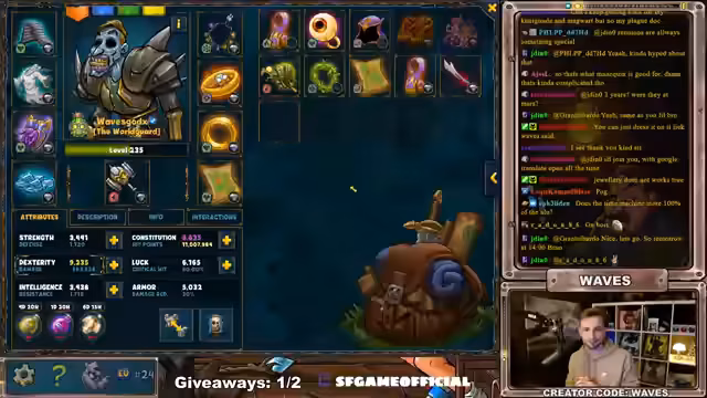 01:22:13Ein Zuschauer fragt nach einem Runen-Guide, da er diese bisher nicht ernst genommen hat. Der Streamer erklärt, dass der Arena Manager sehr wichtig für Runen ist. Für Kampfausrüstung sollte man sich immer auf HP% konzentrieren, um diesen Wert so hoch wie möglich zu bekommen. Bei besseren Runen kann man zusätzlich Resistenzen hinzufügen. Für das Quest-Set sollte man sich zuerst auf XP konzentrieren und später, wenn man bessere Runen hat und das XP-Cap von 10 erreicht ist, auch Gold-Boni hinzufügen. Es wird auch die Mechanik wiederholt, wie man Stats auf Turm-Ausrüstung für den Plague Doctor ändert: Man legt den Gegenstand kurzzeitig dem Mage-Begleiter Mark an und legt ihn dann wieder ab, um die Stats auf Geschicklichkeit zu ändern. Dies funktioniert jedoch nur für Rüstungsteile und nicht für Schmuck.