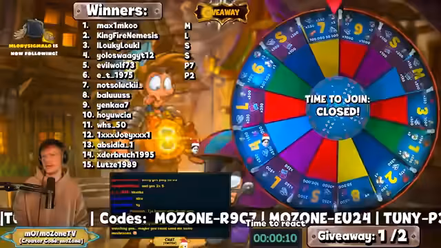 00:37:29Ein Hauptevent des Streams ist das Giveaway. Nach Ankündigungen und Erläuterungen zur Teilnahme wird das Glücksrad gedreht. Währenddessen kommt es zu technischen Verwirrungen, wie beispielsweise einem Timer, der fälschlicherweise startet. Die Gewinner, deren Namen ausgelost werden, erhalten ihre Pakete. Der Streamer klärt zudem Fragen zu den Drop-Mechanismen und warum nicht alle Drops scheinbar ausgelöst werden, was an einer 15-Sekunden-Verzögerung liegen kann.