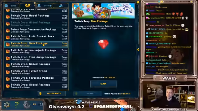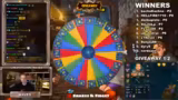 00:23:23Nachdem genug Gold gesammelt wurde, startet der Streamer das erste Giveaway. Das Prinzip wird erklärt: ein Schlüsselwort wird in den Chat getippt, um automatisch an der Verlosung teilzunehmen. Es werden zehn Gewinner ermittelt, die jeweils eine Frage beantworten müssen. Anschließend wird für jeden Gewinner an einem Glücksrad gedreht, um die zu gewinnenden Pakete zu bestimmen. Das Giveaway erfolgreich beendet.