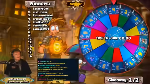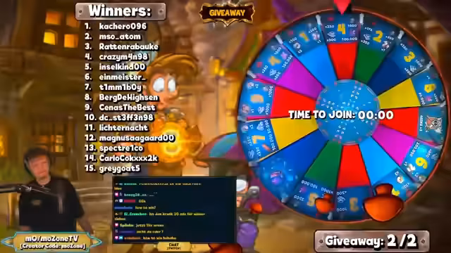 00:39:34Die Arena-Kämpfe gehen weiter, der Streamer kämpft gegen einen Paladin. Gleichzeitig wird das zweite Giveaway durchgeführt. Es treten vermehrt Probleme auf, da einige Gewinner nicht reagieren oder den Stream verlassen. Aus diesem Grund wird mehrfach ein Reroll durchgeführt, um zu fairen Teilnehmern zu finden. Der Chat und der Streamer diskutieren die zunehmend abenteuerliche Situation bei der Gewinnerauswahl.