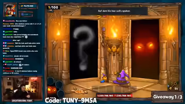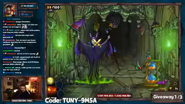 01:38:49Nachdem alle drei Cosplay-Bilder als sehr stabil bewertet wurden, konzentriert sich der Streamer auf den letzten Zero-Death-Run des Abends. Trotz des Bemühens scheitert der Versuch erneut, hauptsächlich an der mangelnden Ausweichchance und einem selbstverschuldeten Tod. Anschließend startet ein Giveaway mit dem Keyword 'Keine Glück heute', bei dem trotz zweier Verlosungen die gleichen Gewinner mehrmals gezogen werden. Der Streamer stellt die Zufälligkeit der Verlosung in Frage und weist darauf hin, dass die Gewinner per Direktnachricht kontaktiert werden.