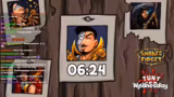 01:03:39Die Versuche für Zero Death Runs werden fortgesetzt. Der Streamer kämpft sich durch die Räume und muss dabei oft Kompromisse eingehen, um auf Gold und Legendenitems zu verzichten, die das Risiko eines Todes erhöhen. Zwischendurch interagiert er intensiv mit dem Chat, beantwortet Fragen und lädt die Zuschauer erneut zur Vorhersage-Wette ein. Ein mögliches Feature wie ein 'Restart' für den LD wird als Wunsch thematisiert, um die Frustration bei gescheiterten Runs zu verringern. Ein Diskussion über Avatar-Voting wird kurz angestoßen.