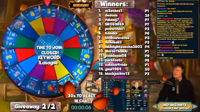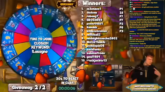03:19:29Die Giveaway-Aktion lief unter dem Schlüsselwort 'Lasagne!'. Nach Ablauf wurden die Gewinner gezogen und benachrichtigt. Die Regel des 30-Sekunden-Fensters für die Teilnahme wurde erklärt, um Fairness zu gewährleisten, trotz eventueller Stream-Verzögerungen. Es wurde bestätigt, dass über 100 Teilnehmer gewonnen haben und die Belohnungen, meist Pilze oderPackages, ausgezahlt werden.