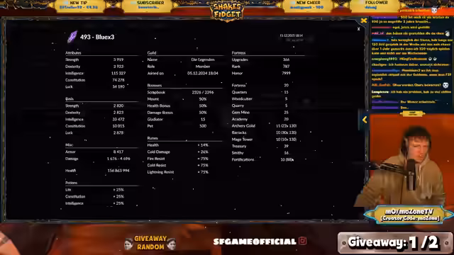 01:41:04Der Fortschritt zum Level-12-Ziel wird analysiert, wobei sieben Level in 20 Tagen als herausfordernd eingestuft werden. Dazu sind mehrere Dungeon-Durchläufe nötig, besonders für die neuen Licht- und Schatten-Dungeons ab Level 500. Der Streamer vergleicht die Stats verschiedener Top-Spieler und stellt fest, dass Magier-Klassen aktuell besonders stark sind. Er diskutiert, wie wichtig richtige Equipment-Auswahl und Gem-Sockets für den Erfolg sind und gibt Tipps zur Optimierung des Builds.