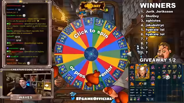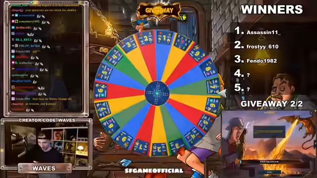 01:29:57Das Giveaway wird mit dem Keyword "!Waves42" gestartet, und die Community hat eine kurze Zeit, um teilzunehmen. Der Streamer bereitet währenddessen die Verlosung vor. Nach Ablauf der Zeit werden die Gewinner bekannt gegeben: Assassin11, Frosty610, Fendo, Fwenni und Innocent. Jeder Gewinner wird nach einer persönlichen Frage zu Shakes and Fidget befragt, wie zum Beispiel der Lieblingsklasse oder der Meinung zum Deeds- und Titel-Update. Die Preise werden durch ein Glücksrad bestimmt, und die Gewinner erhalten Pakete unterschiedlicher Größen. Die Abwicklung der Preise erfolgt in der kommenden Woche über Twitch-DMs, wo die Gewinner ihre Charakter- und Serverinformationen angeben müssen, um ihre Belohnungen zu erhalten.