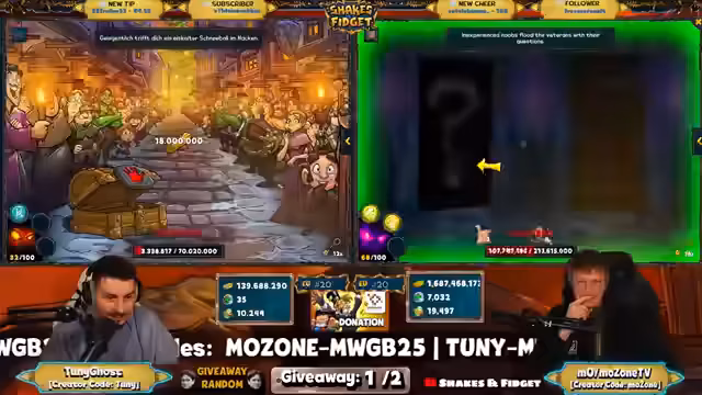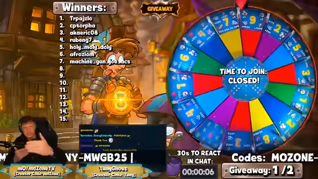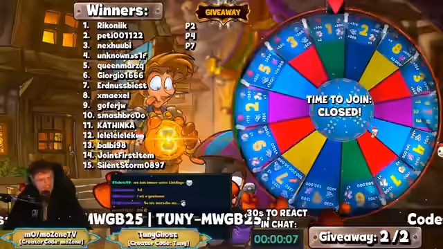 02:13:40Während des Streams wird ein Giveaway gestartet, bei dem mehrere Gewinner gezogen werden müssen. Die Moderatoren bitten die Teilnehmer, innerhalb von 30 Sekunden im Chat zu reagieren, um den Gewinn zu bestätigen. Einige Namen sind schwer auszusprechen oder zu schreiben, was zu Verzögerungen führt. Es erfolgt auch ein Reroll für Teilnehmer, die nicht rechtzeitig reagieren. Insgesamt werden mehrere Gewinner ermittelt, wobei die Veranstalter betonen, dass der Prozess fair und zufällig abläuft. Gleichzeitig diskutieren die Spieler Strategien für Zero-Death-Runs im Legendary Dungeon und den effizienten Einsatz von Ressourcen.