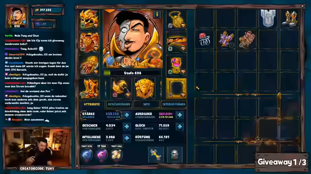 02:09:00Der Streamer veranstaltet mehrere Giveaways während des Livestreams. Insgesamt werden drei Gewinne ausgelost, wobei die Gewinner eine direkte Nachricht via Twitch erhalten. Die Verlosung erfolgt über Schlüsselwörter, die im Chat gepostet werden müssen. Die erste Verlosung geht an 'Achilles', die zweite an 'Venga Carol' und die dritte an 'Valandris'. Die Gewinner erhalten unterschiedliche Pakete, die Pilze und andere In-Game-Gegenstände enthalten.