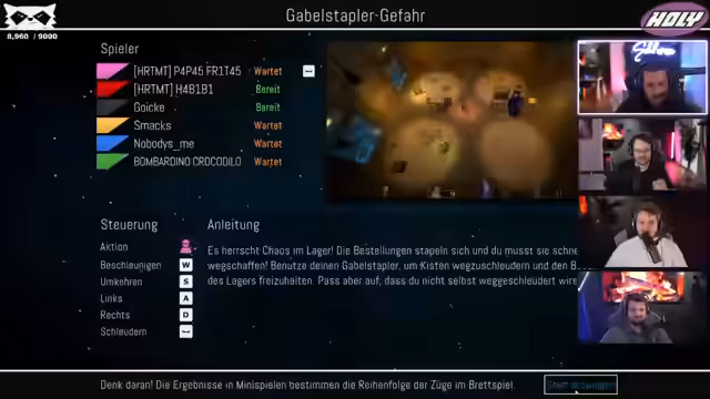 04:30:53Der Stream beginnt mit einem intensiven Gameplay, bei dem die Teilnehmer Schlüssel sammeln und taktische Entscheidungen treffen. Es kommt zu interaktion zwischen Spielern, wobei einige Spielern wie Smacks und Golke im Mittelpunkt stehen. Der Fokus liegt auf dem Sammeln von Ressourcen und dem strategicen Einsatz von Items, obwohl es anfänglich zu Missverständnissen und taktischen Fehlern kommt. Die Teilnehmer diskutieren über die Spielmechaniken und versuchen, sich Vorteile zu verschaffen, wobei es auch humorvolle Momente gibt.