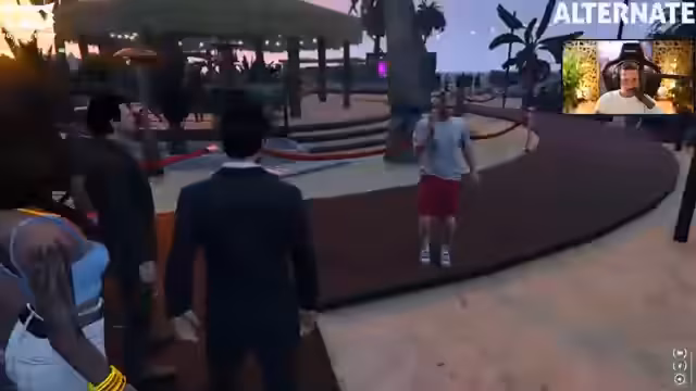 04:17:11Die Szene verschiebt sich auf einer Party auf der Insel, wo Gäste essen, trinken und feiern. Es gibt Diskussionen über den Zeitplan und den Partyverlauf. Der Streamer beobachtet das Geschehen, unterhält sich mit anderen Gästen wie Bennett und Alessio und erwähnt, dass die Party noch ein wenig schleppend startet, da sich die Gäste noch zögerlich auf die Tanzfläche wagen.