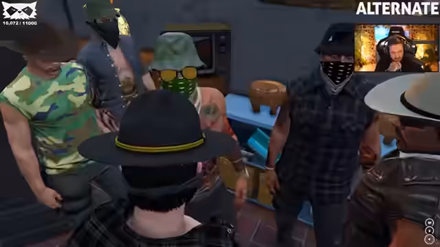 07:36:00Nach der Flucht vor der Polizei erreicht die Gruppe mit dem gestohlenen Gut den Treffpunkt auf Cayo Perico. Sie werden von Mitgliedern des Kartells erwartet, die ihre Identität und ihren Auftrag hinterfragen. Währenddessen taucht der zuvor bestohlene Blunt wieder auf, der den Streamer erkennt und ihn mit dem Gewerbeamt in Verbindung bringt. Dies führt zu einer angespannten Konfrontation, da ein Mitglied des Kartells, Philippe, eröffnet, seit zwei Jahren Teil der Organisation zu sein und seine frühere Anstellung beim Gewerbeamt offenlegt.