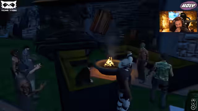 05:22:17Die Szene verschiebt sich zu einem konkreten Treffen zwischen dem Streamer und einem anderen Charakter namens Bennett. Sie unterhalten sich über praktische Dinge. Der Streamer bringt Bennett ein Funkgerät und Proviant mit, darunter Spare Ribs und Brownies. Anschließend zeigt Bennett dem Streamer eine selbstgebaute Waffe und die beiden unterhalten sich über die Möglichkeit, Bennett medizinische Fähigkeiten wie die Versorgung von Wunden beizubringen. Es ist eine Interaktion, die auf praktischer Zusammenarbeit und dem Austausch von Ressourcen basiert.