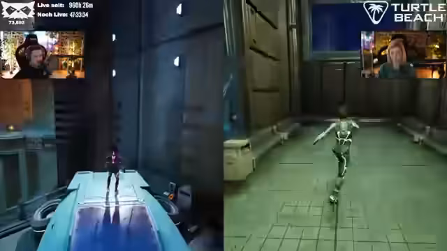 07:58:04Nach einem technischen Problem mit dem Audio wird das Spiel Split Fiction gestartet. Nach einer kurzen Einführung in die Story, in der zwei Schriftsteller in ihre eigenen Simulationen gezogen werden, beginnt das Gameplay. Die Spieler übernehmen die Rollen von Mio und Zoe und navigieren durch eine Science-Fiction-Welt, um ein Raumschiff zu kapern. Die Zusammenarbeit stellt eine Herausforderung dar, da die Steuerung komplex ist und die Dialoge leger gemischt sind.