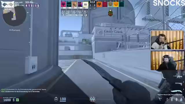 03:43:59Eine spontane Runde Counter-Strike wird gestartet, auch wenn der Streamer unsicher ist, ob die Zeit für ein komplettes Match reicht. Es wird eine Runde auf Nuke gespielt, bei der der Streamer und sein Mitspieler Emse deutlich unterlegen sind. Trotzdem wird die Leistung von Emse gelobt. Der Zeitdruck durch den bevorstehenden Flug ist spürbar und führt zu einer hastigen und nicht optimalen Partie.