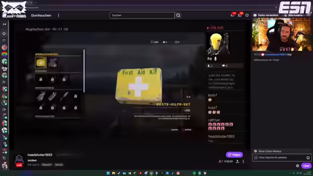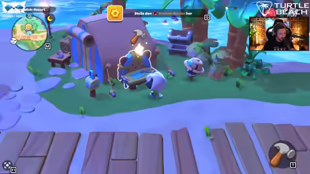 00:53:02Es wird ein Problem im Spiel Hello Kitty Island Adventure geschildert, bei dem Materialien für einen Sensor gesammelt werden müssen, aber unklar ist, woher diese stammen. Ein leuchtender Punkt führt zu einem depressiven Vogel, der einen Holzstamm benötigt, der aber nicht gefunden werden kann. Der Chat wird um Hilfe gebeten. Ein Zuschauer gibt den Tipp, in Waldgebieten nach dem Holzstamm zu suchen. Es wird sich über einen Streamer lustig gemacht, der im Chat Werbung für seinen eigenen Kanal macht, während er Far Cry 5 spielt. Es werden Tipps gegeben, wie der Streamer seinen Content verbessern könnte, z.B. durch Konzentration auf den eigenen Inhalt, Erhöhung der Bitrate und Streaming über einen PC anstelle einer Playstation 4. Es wird sich weiterhin über die Sinnlosigkeit der Aufgaben im Spiel lustig gemacht, während nach einem Holzstamm gesucht wird. Schließlich wird eine Kokosnuss gefunden, die dem depressiven Vogel als Geschenk gegeben wird, um das Freundschaftslevel zu erhöhen und den Kristallsensor bauen zu können.
