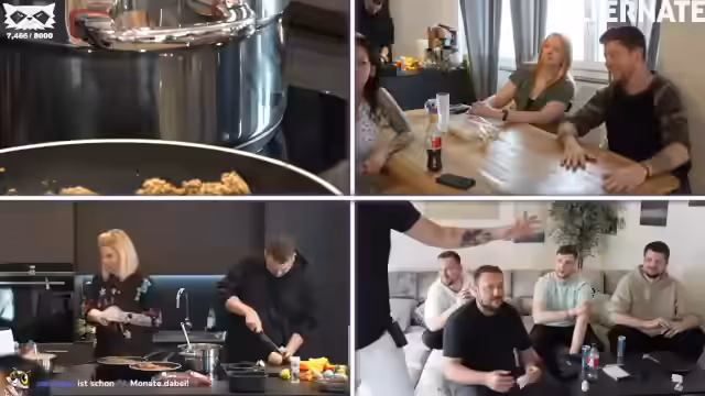 00:35:43Es wird ein Cringe-Segment für später in der Nacht angekündigt, um 1 Uhr. Es folgt eine Diskussion darüber, was genau mit „Cringe“ gemeint ist, da es verschiedene Interpretationen gibt. Der Streamer schaltet in die Küche, wo die Teilnehmer die Zuschauer begrüßen und die Zubereitung von Quesadilla-Schnitten erwähnen. Es wird betont, wie gut es in der Küche riecht, insbesondere nach Knoblauch. Die Dips für die Quesadillas werden zubereitet. Es wird scherzhaft angedeutet, dass das Event schon seit Tagen läuft, da die Stimmung so entspannt ist. Die Zubereitung der Quesadillas wird erklärt, und es wird ein Einblick in die Vorbereitungen vor dem Event gegeben, bei denen alle auf das Essen warten. Es wird eine Tradition bei Events erwähnt, bei der neue Teilnehmer auf unangenehme Weise vorgestellt werden, um sie auf das vorzubereiten, was sie erwartet. Emse, ein neuer Teilnehmer, wird gebeten, sich vorzustellen, während alle zusehen. Emse gibt eine kurze Vorstellung und äußert seine Vorfreude auf das Event. Nach der Vorstellung wird wieder in die Küche geschaltet, wo die Zubereitung der Quesadillas und Guacamole fortgesetzt wird. Die Zutaten für die Quesadillas werden aufgezählt, darunter Hackfleisch, Paprika, Mais, Bohnen, Zwiebeln, Tomaten und Käse.