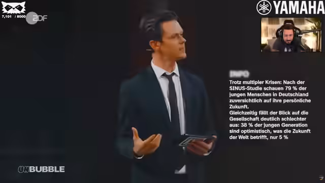 01:21:59Der Stream lenkt zu einem aktuellen, ernsten Thema über die politische Zukunft. Es geht um die Prognose, dass Deutschland im Jahr 2026 in einer schwierigen Lage sein könnte. Dies löst eine intensive Diskussion über den richtigen Umgang mit dieser Zukunftssorgen aus. Während eine Seite für realistischen Optimismus und eigenes Handhalten plädiert, vertreten andere einen Pessimismus, der als Motivation für Veränderung gesehen wird.