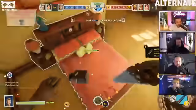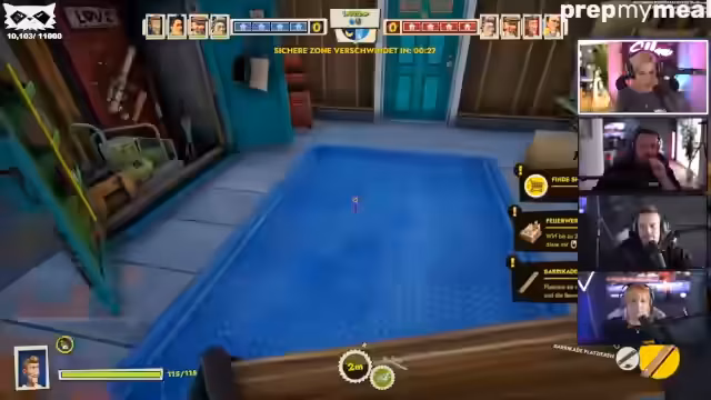 06:19:59Die Spieler planen einen gezielten Angriff auf das gegnerische Haus, wobei sie verschiedene Gegenstände wie Möwen-Strikes und Katapulte einsetzen. Sie müssen sich gegenseitig heilen und gleichzeitig versuchen, wichtige Ziele im Haus zu zerstören. Es ist ein Kampf um Raumkontrolle und Zerstörung gegnerischer Einrichtungen.