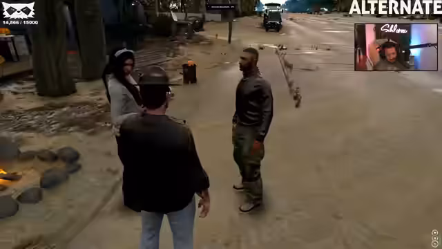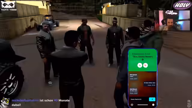 05:06:52Parallel zu den Problemen im Autohaus tauchen neue Handlungslinien auf. Ein ehemaliger Blau-Mitglied namens Ganja möchte eine Waffe über diese Gruppe auf der Insel erwerben, was als illegales Geschäfte eingestuft wird. Auch eine Gang namens Grün hat eine große Schrotflinte gekauft. Des Weiteren taucht eine Person namens Pedro auf, und es wird erwähnt, dass ein früheres Zuhause des Streamers nun von einer Person namens Klaron bewohnt wird, dem ein provokantes Bild des Streamers dort aufgehängt wurde.