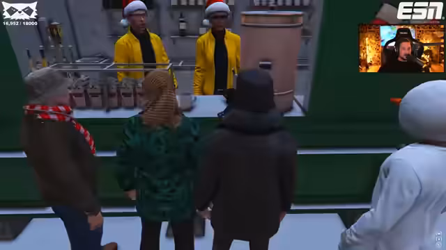 06:43:18Es wird diskutiert, wie die Bank vor Überfällen geschützt werden kann. Im Meetingraum trifft die Gruppe auf Walter, einen älteren Mann, der sich als 'Walter van Hell' vorstellt und auf dem Weihnachtsmarkt etwas zu essen sucht. Er wird als 'ältester Mann' bezeichnet, den der Streamer je gesehen hat. Walter wird ein Backfischbrötchen vom Weihnachtsmarkt empfohlen, und die Gruppe nimmt ihn im Auto mit. Auf dem Weihnachtsmarkt werden verschiedene Stände besucht. Am ersten Stand gibt es heißen Whisky, Popcorn und alkoholfreien Früchte-Punch. Popcorn ist jedoch nur Dekoration. Es werden Chicken Wings und Fruchtsaft bestellt, wobei die Preise als sehr hoch empfunden werden. Es wird über die Inflation und die Haltungsbedingungen der Hühner diskutiert, wobei humorvoll gefragt wird, ob das Huhn Spielzeug hatte. Der Preis von 104 Dollar für zwei Chicken Wings und zwei Getränke wird als überteuert angesehen, und es wird versucht, zu handeln.