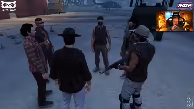 05:06:52Der Fokus verlagert sich auf das RP-Szenario auf Cayo Perico. Eine Person namens Lucius Solomon taucht auf dem Casino-Gelände auf und gibt sich als Gärtner für das Kartell aus, was jedoch als Lüge vermutet wird. Gleichzeitig wird die Bürgermeister-Wahl thematisiert, bei der Kandidaten gesucht werden, und Oggy wird als möglicher Kandidat genannt, der als Kakerlakenkönig bekannt ist.