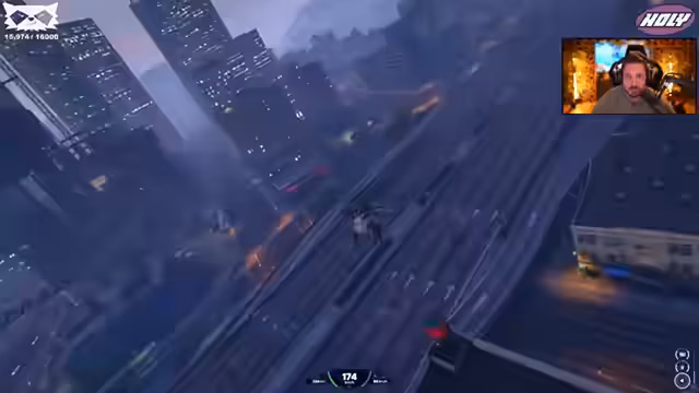 07:18:16Die Polizei in Los Santos wirkt überreagierend und panisch. Eine Fluchtgruppe verliert die Nerven und flieht vor einem Hubschrauber, was der Streamer als völlig übertrieben bezeichnet. Die gesamte Situation wirkt chaotisch und zeigt eine paranoide Stimmung bei den Bullen, die anscheinend ohne ersichtlichen Grund eskaliert wird.