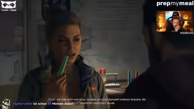 02:04:49Der Spieler und Olivia begeben sich auf eine Autofahrt durch die Stadt, um zu Olivia zu gelangen. Die Navigation erweist sich als kompliziert, da die Karte eine andere Richtung vorgibt als erwartet. Während der Fahrt kommt es zu humorvollen Interaktionen mit Zombies und einem missglückten Parkversuch. Bei Olivia angekommen, entschuldigt sich der Spieler für den Zustand des Autos. Olivia präsentiert eine Theorie über die Herkunft des Virus und bittet um eine Blutprobe, um die Reaktion auf extrahiertes Plasma zu testen. Sie gibt dem Spieler den Auftrag, eine Chimäre in einem sumpfigen, feindlichen Gelände zu finden, um Skill-Punkte zu erhalten.