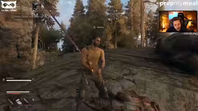 02:12:18Der Spieler gerät in eine unerwartete Situation, als er auf Geiselnehmer trifft. Es kommt zu einem Kampf, bei dem der Spieler verletzt wird und feststellt, dass er keine Heilmittel mehr hat. Nach der Herstellung von Verbänden und Wurfmessern repariert der Spieler seine Waffen und kehrt zum Ort des Geschehens zurück, um die Gegner zu bekämpfen. Später trifft der Spieler auf einen Verbündeten namens Pachiro, der ein gigantisches Schwert trägt. Pachiro wird als 'Geheimwaffe' rekrutiert, um den Spieler im Kampf zu unterstützen. Es wird humorvoll angemerkt, dass Pachiro Bosse mit einer Hand besiegen kann und dass sein Schwert unverzichtbar ist.