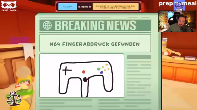 02:43:10Der Hausmeister des Flohmarktgeländes sagt als Zeuge aus und behauptet, gesehen zu haben, wie der Angeklagte ein N64 gestohlen und eine Frau umgerannt hat. Die Verteidigung stellt die Glaubwürdigkeit des Zeugen in Frage und präsentiert Beweise dafür, dass der Zeuge während der Tat in ein Mettbrötchen vertieft war. Die Anklage argumentiert, dass der Zeuge multitaskingfähig sei und die Tat trotz des Essens beobachtet haben könne. Die Verteidigung ruft einen Hund namens Doggy in den Zeugenstand, um zu beweisen, dass sich der Angeklagte um Tiere kümmert und sich deshalb auf dem Flohmarkt aufhält. Die Jury zeigt Bilder von dem Hund. Die Anklage deutet an, dass der Zeuge ein Hund gewesen ist. Ein Fingerabdruck wurde auf dem N64 gefunden.