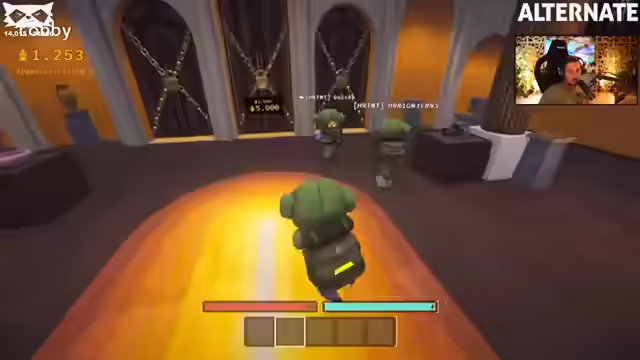 03:45:45Es gibt Probleme mit der Größe des Charakters Hunt, der aufgrund eines Fehlers im Spiel riesig bleibt und dadurch Jump'n'Run-Passagen überspringen kann. Dies wird als Cheaten angesehen, und es wird überlegt, das Spiel neu zu starten, um den Fehler zu beheben. Es wird festgestellt, dass man in den Lobbys nicht miteinander reden kann. Es wird ein Item mit 1440 Punkten gefunden, das ausgestellt werden soll. Es wird diskutiert, ob man die Lobby speichern und neu starten soll, da es Probleme mit der Erreichbarkeit der Dusche gibt, die benötigt wird, um die normale Größe wiederzuerlangen. Nach einem Neustart hat der Charakter wieder normale Größe. Es werden nur noch 4000 Ausstellungspunkte benötigt, um einen neuen Raum freizuschalten, der wiederum neue Level ermöglicht. Es wird festgestellt, dass das Spiel sehr Beta ist und keinen Schwierigkeitsgrad hat. Das Ziel ist es, Gegenstände zu sammeln und sie in den Raum zu legen.