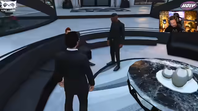 07:39:29Es finden mehrere Gespräche über Operationen und Kooperationen statt. Grove und Blau planen ein Treffen auf dem Casino-Parkplatz, während über mögliche Raids und Überfälle diskutiert wird. Es geht darum, Perez zu packen und zu verhören, während gleichzeitig über mögliche Gegenmaßnahmen gesprochen wird. Der Streamer zeigt Entschlossenheit, die Situation in den Griff zu bekommen.