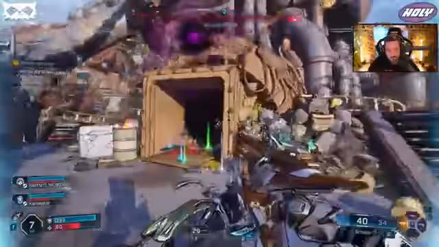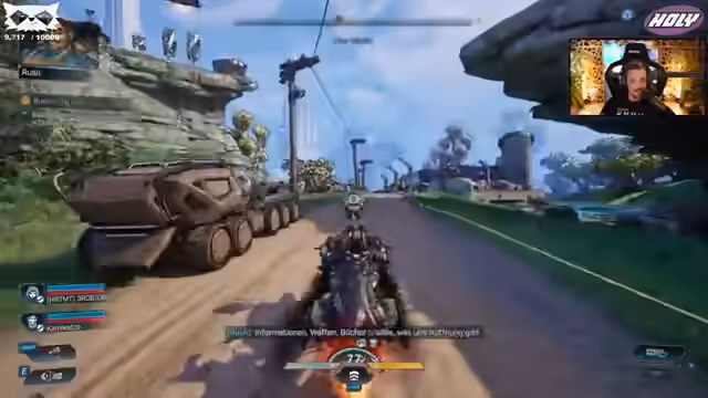 01:57:40Im Stream beginnt der Streamer mit einer Shotgun, wechselt jedoch bald zu anderen Waffen wie einer blauen Waffe. Es wird erkundet, wie man hochkommt, wobei ein Jetpack und ein Doppelsprung genutzt werden. Sie bewegen sich durch eine Station, finden viel Loot und stoßen auf Gegner, die in einer Box eingesperrt sind. Das Inventar füllt sich schnell, und der Streamer zeigt sich begeistert von den Jetpack- und Gleitfunktionen, die das Gameplay verbessern.