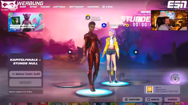 05:59:33Der Streamer kündigt an, gemeinsam mit Isa das Fortnite Live-Event für Kapitel 7 anzusehen, welches am nächsten Tag verfügbar sein wird. Es wird betont, dass Fortnite ohne Bauen eine spannende Erfahrung ist und auch in früheren Events bereits gespielt wurde. Isa wird als Fortnite-Carry vorgestellt, obwohl sie ihre Fähigkeiten im Bauen als sehr gering einschätzt, im Nicht-Bauen jedoch eine solide Fünf von Zehn erreicht. Während der Wartezeit auf das Event tauschen sich die beiden über ihre Essgewohnheiten aus, wobei Isa mit Mini-Pancakes und Nutella für Neid sorgt. Es wird auch über Haustiere gesprochen, wobei der Streamer seinen Kater Simba vorstellt und Isa von ihren Katzen und ihrem Hund erzählt. Die Diskussion über die Interpretation des Countdown-Textes als 'Kapitalismusende' anstelle von 'Kapitelfinale' sorgt für Heiterkeit, bevor das Event startet.