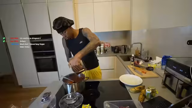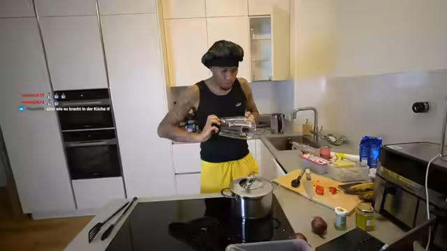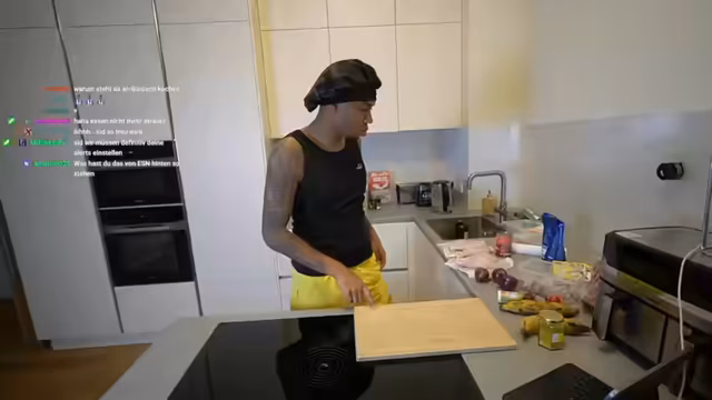 00:06:10Der Streamer beginnt mit der Vorstellung der Zutaten für sein afrikanisches Lieblingsgericht. Er plant, Kochbananen (Plantain), Rindermagen (Shaki) und Hähnchenschenkel zuzubereiten, da er diese Zutaten am liebsten mag. Weitere Bestandteile sind Curry, Thymian, Paprika, Hühnerbouillon, Reis, Tomaten (seine Lieblingssorte für ihre Fruchtigkeit) und rote Zwiebeln. Das Gericht, das er zum ersten Mal selbst kochen wird, ist ein Tomaten-Stew mit Hähnchen und Shaki, serviert mit Reis und Kochbananen. Er betont die Köstlichkeit von Kochbananen und ermutigt die Zuschauer, diese unbedingt zu probieren. Die Zubereitung dieses Gerichts ist Teil seiner „Lebensaufgabe“, um später seiner Familie zeigen zu können, dass er kochen kann.