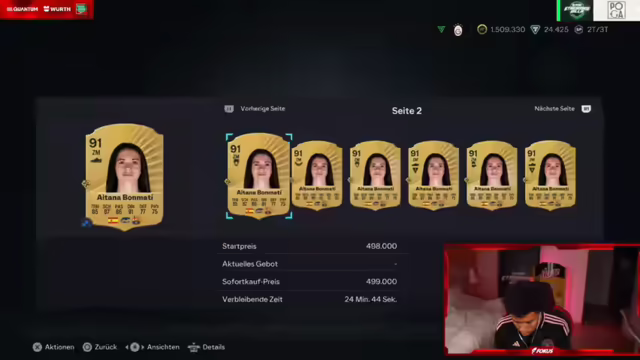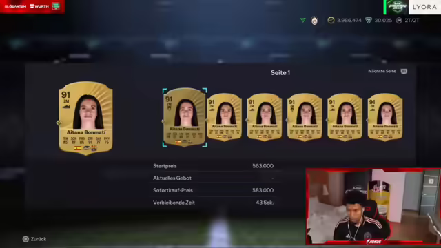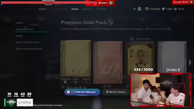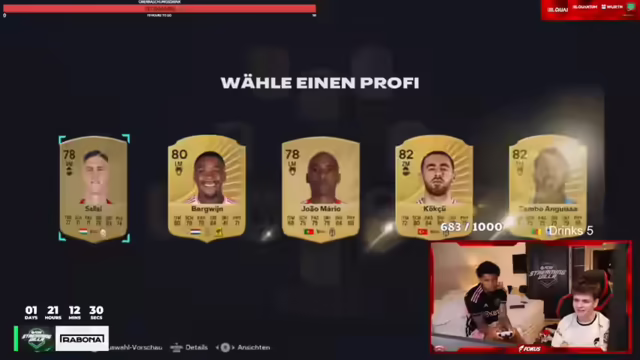 08:34:25Es wird über verschiedene Spielertaktiken und -käufe diskutiert, wobei der Fokus auf dem Erwerb von Helden und anderen wertvollen Spielern liegt. Es werden Summen von 10 bis 100 Euro genannt, die für bestimmte Spieler ausgegeben wurden. Die sogenannte "Sydney-Taktik" wird erwähnt, bei der es um spezielle Zahlungsmethoden geht, um Vorteile zu erzielen. Es geht um den Handel mit Spielern, das Ziehen von Helden für geringe Beträge und die Freude über erfolgreiche Käufe. Die Community wird aufgefordert, Clips von besonderen Momenten zu erstellen und sich an Pack-Openings zu beteiligen. Es wird überlegt, wer von den Zuschauern bereit wäre, für bestimmte Aktionen im Spiel Geld auszugeben, wobei Beträge von 10 bis 50 Euro im Raum stehen. Es wird über Subbombs und deren potenzielle Auswirkungen auf andere Streamer gesprochen. Es wird die Bedeutung von emotionalem Wert bei Spielern betont und die Frage aufgeworfen, ob es Leute gibt, die bereit wären, bestimmte Spieler von ihm zu kaufen, darunter ein Jaya Touré für zwei Millionen. Es werden Kameraeinstellungen geteilt und über Wettbewerbsverhalten im Spiel diskutiert.