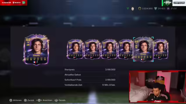07:59:45Es wird über den Wert von Iniester diskutiert und die Überraschung über dessen gestiegenen Preis ausgedrückt. Es gibt eine humorvolle Interaktion bezüglich des Teilens von Chicken Wings, was zu einer Diskussion über das bevorstehende Grillen führt. Der Fokus verschiebt sich kurzzeitig auf kulinarische Aspekte, bevor wieder auf das Spiel zurückgekommen wird. Es wird über Team Deathmatch gesprochen, was sich auf die Spielweise bezieht. Es wird erwähnt, dass Rui Costa unterbewertet ist und über unfassbare Playstyles verfügt. Es folgt eine Diskussion über den versehentlichen Verkauf von Rui Costa und den Versuch, den Fehler zu korrigieren. Der Streamer äußert Frustration über den Markt, da Rui Costa fast ausverkauft ist. Es wird über den Verkauf von Rui Costa bei einem bestimmten Preis diskutiert und die Frage aufgeworfen, ob man ihn behalten oder verkaufen soll. Es wird über den Kauf von Kunde und dessen Preisentwicklung gesprochen. Der Fokus liegt auf der Beobachtung des Marktes, dem Treffen von Entscheidungen über den Kauf und Verkauf von Spielern und der Interaktion mit dem Chat über verschiedene Themen, einschließlich kulinarischer Vorlieben.