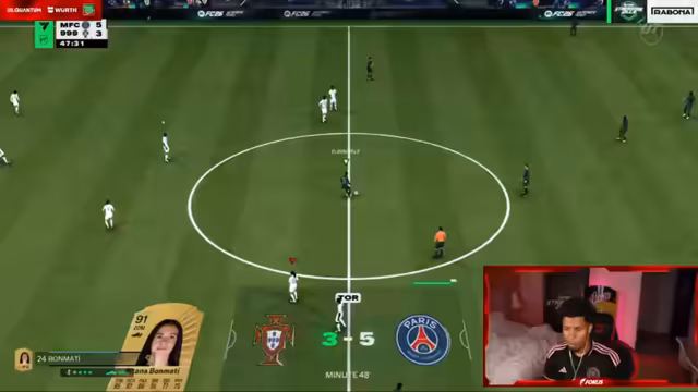 09:18:40Der Streamer diskutiert intensiv über seine Spielstrategie in FC26, insbesondere über die geplante Verwendung einer 4-3-N-Taktik über 105 Stunden. Er bietet einem Mitspieler an, ihm im Gegenzug einen schnellen Konter zu ermöglichen und dafür 100% der erzielten Punkte zu teilen. Die Unterhaltung dreht sich auch um den Kauf von Spielern wie Mbappé und Dembélé, wobei die hohen Marktwerte und die damit verbundenen Investitionen thematisiert werden.