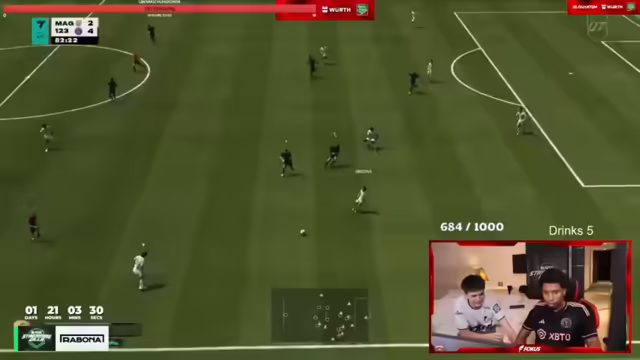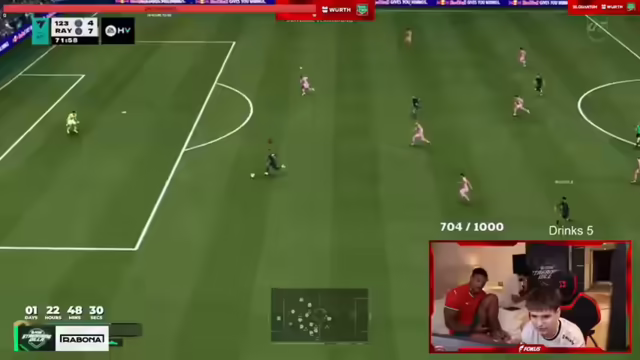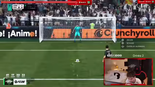 11:54:17Es wird überlegt, Isak durch Palmer zu ersetzen, da Isak als unbeweglich empfunden wird. Es kommt zu einem erneuten Konter und einem Flachschuss in die lange Ecke. Der Streamer erwähnt, dass er bereits zehn Stunden live ist und fragt nach dem Preis von Palmer. Es wird festgestellt, dass Viereck im Spiel schlecht geworden ist und Kreis die bessere Option ist. Der Streamer äußert seinen Hass darauf, wenn Offensivspieler den Ball abnehmen und die eigenen Abwehrspieler ihren Namen tanzen. Precision-Shooting wird als schwer empfunden und Isak wird als schlecht bezeichnet. Der Streamer kritisiert, dass man beim Zielen nichts trifft und dass er den Ball nicht bekommt. Es kommt zu mehreren Kontern und Gegentoren, was zu Frustration führt. Der Tisch wird vor Wut geklatscht und überlegt, sich eine Mische zu machen. Florian Wirz und Isak im Sturm werden als unbrauchbar empfunden und es wird festgestellt, dass man nur mit R9 spielen kann. Es wird sich darüber beschwert, keinen Stürmer mit über 85 Pace zu bekommen und vier Konter-Gegentore zu kassieren, wobei ein einziger Dreieckspass beim Gegner ausreicht.