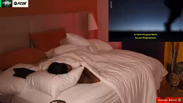 13:03:33Neben den FIFA-Aktivitäten wechselt der Streamer zu verschiedenen Themen, darunter Wrestling und allgemeine Gespräche. Er äußert Bewunderung für Sidney als Trader, erwähnt eine peinliche Situation beim Tanzen und beschäftigt sich mit dem Stream von Smackdown. Der Chat wird für Vorschläge genutzt und es entstehen persönliche und humorvolle Anekdoten, wie die Klagen über einen unangenehmen Mitbewohner. Ein Höhepunkt ist der Versuch, gemeinsam ein Lied zu finden, was in der Unordnung endet.