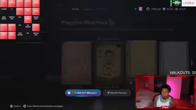 03:24:25Es wird ein Pack-Bingo mit Eli gespielt, wobei pro Bingo 10 Subs an den anderen gehen. Der Streamer hat bereits ein Bingo voll. Es wird überlegt, wie lange das Bingo gespielt werden soll. Es wird diskutiert, ob ein Handy-Screen für den Stream und gleichzeitiges CL-Schauen im Wohnzimmer gezeigt werden kann. Es wird überlegt, ob Handy-Packs geöffnet werden sollen. Es wird über die Stärke von Militao und Marquinhos diskutiert. Es wird überlegt, ob ein Draft gespielt werden soll. Es wird überlegt, ob ein Draft gespielt werden soll. Es wird festgestellt, dass die Server die Anfrage nicht verarbeiten können und ein Loose droht. Es wird überlegt, ob Draft schwer ist. Es wird erzählt, dass Iniesta von 200k auf 1 Million gestiegen ist. Es wird erzählt, dass Micky eine Icon gezogen hat. Es wird überlegt, ob draußen gesessen werden soll. Es wird festgestellt, dass der Chat den Streamer nicht hört, wenn er die Szene wechselt. Es wird ein Flashback-SPC gefunden. Es wird versucht, drei Rare, Ex-Hertha, Perfect Link zu finden. Es wird festgestellt, dass Perfect Link schwer ist. Es wird überlegt, ob Micky kommen soll. Es wird sich wieder auf die Packs konzentriert. Es wird ein Ballon d'Or gesucht. Es wird festgestellt, dass immer nur zwei Frauen gezogen werden. Es wird ein Perfect Link gesucht. Es wird gehofft, dass Schief Kief alles vernünftig eingestellt hat. Es wird erzählt, dass der Streamer jeden Tag so 10 bis 15 Stunden live ist.