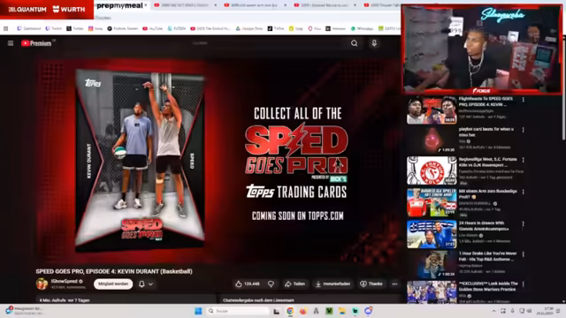 03:10:02Der Streamer bereitet sich auf den Showdown mit Kevin Durant vor. Zuerst treten sie in einem NBA-3er-Wettbewerb an, bei dem der erste Spieler, der fünf Körbe trifft, gewinnt. Der Streamer zeigt sich überraschend gut und kommt KD näher, als viele erwartet hätten. Anschließend spielen sie ein 2-gegen-2-Match gegen zwei vielversprechende College-Spieler, Zubi Ejiofor und Bryce Hopkins, die voraussichtlich in die NBA kommen werden. KD und der Streamer bilden ein Team, um gegen die jungen Talente anzutreten. Das Spiel ist auf sechs Punkte angesetzt, wobei jeder Korb einen Punkt zählt. Trotz der Erfahrung von KD geraten sie schnell in Rückstand, was für Überraschung und Amüsement sorgt. Das Match verdeutlicht die Herausforderungen, die der Streamer im Basketball auf hohem Niveau hat, und die Dominanz der professionellen Spieler.