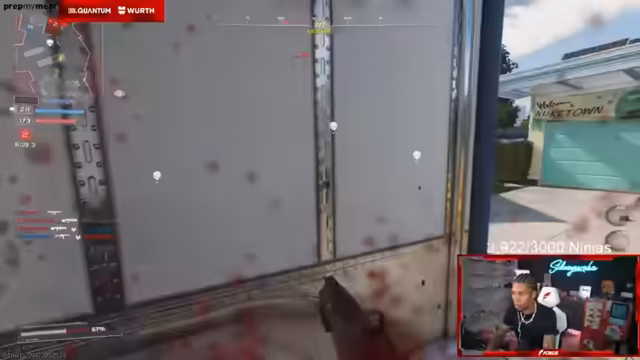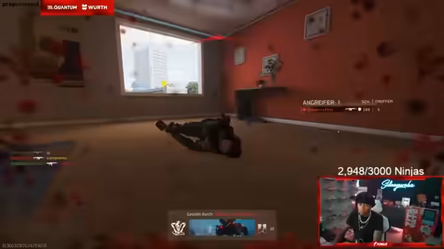 04:54:21Der Streamer beschließt, die Nacht in einem Stundenhotel zu verbringen, das ihm von den Sexarbeiterinnen als typischer Ort genannt wurde. Er ist schockiert über den Zustand des ersten Zimmers, das voller Insekten ist und extrem stinkt, und muss ein anderes Zimmer verlangen. Nach der Übernachtung wechselt der Stream zum Gaming-Teil des Streams, wo er mit Freunden Call of Duty auf der Karte Nuketown spielt. Die Spieler, darunter Eldos, Trimax, Adam und Rüdiger (der als 'Schuldberater' bezeichnet wird), versuchen, ihre Fähigkeiten zu beweisen und hohe Kill-Zahlen zu erreichen. Der Streamer erreicht ein 'Career High' von 93 Kills. Die Stimmung ist ausgelassen und kompetitiv, mit viel Geplänkel und Frustration über Spawn-Punkte und gegnerische Taktiken. Es werden verschiedene Waffen und Taktiken diskutiert, während sie versuchen, die Gegner zu dominieren.