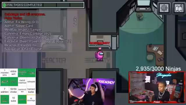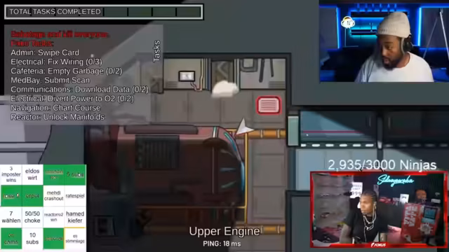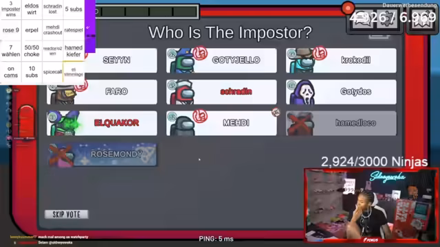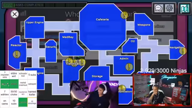 07:40:32Ein Spieler ist mit Schradin links, aber Schradin ist es nicht. Hamed wird gefragt, wo er ist, und er behauptet, in Security zu sein, was jedoch angezweifelt wird. Es wird spekuliert, dass Schradin der Imposter sein könnte. Ein Spieler macht sich selbst zu 'Sass' und konzentriert sich auf die Crewmates, da Medi eliminiert wurde. Die Spieler bedauern Medis Ausscheiden. Die Konversation wechselt kurz zu einem Nike-Shirt und dem Wunsch nach Fleisch, insbesondere Schwein. Es wird über eine mögliche Reise nach Thailand gesprochen und die Notwendigkeit, sich impfen zu lassen. Die Spieler kehren zum Spiel zurück, wobei die Leiche in Lower Engine Electrical liegt. Ein Spieler hat El Quarko gesehen, wie er in den Vent sprang, aber El Quarko ist tot, was bedeutet, dass der Imposter dumm sein muss oder ein Shapeshifter war. Schradin wird weiterhin verdächtigt, und die Spieler werden aufgefordert, auf ihn zu voten. Die Spieler versuchen, ihre Standorte zu klären und herauszufinden, wer mit wem zusammen ist.