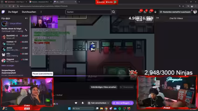 08:39:19Die Among Us-Runde bleibt angespannt, da die Spieler weiterhin versuchen, die Imposter zu entlarven. Die Diskussionen drehen sich um Votings und die Frage, wer wem vertrauen kann. Der Streamer erklärt erneut die Funktionsweise von Snapchat-Antworten, da er die Nachrichten zwar sieht, aber nicht direkt antworten kann, es sei denn, die Zuschauer reagieren erneut auf seine Story. Die Spieler im Spiel sind frustriert über die mangelnden Kills und die Schwierigkeit, die Imposter zu finden. Es gibt den Wunsch nach einem 'schnellen Kill', um die Runde voranzutreiben. Die Atmosphäre ist von Misstrauen geprägt, und die Spieler versuchen, durch logische Schlussfolgerungen die Wahrheit herauszufinden, was sich jedoch als schwierig erweist.