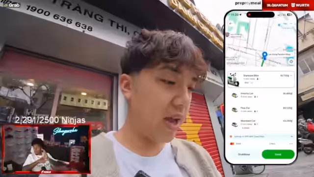 06:23:50Die Reise durch Vietnam wurde mit einem Besuch in einem traditionellen Friseur- und Wellness-Salon fortgesetzt. Dort demonstrierte der Streamer, wie man für nur wenige Euro eine Kopfmassage und eine professionelle Haarewaschung bekommt. Danach zeigte er die Nutzung der Grab-App, der lokalen Version von Uber, um mit einem Moped günstig durch die chaotischen Straßen von Hanoi zu navigieren. Diese zeigte den Alltag der Menschen, auf den Gehwegen und demonstrierte eine ganz andere Art des Verkehrs.