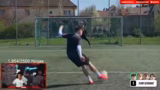 03:23:16Während der 'Mystery Ball'-Challenge, bei der Spieler einen über den Kopf geworfenen Ball direkt schießen müssen, entsteht eine Kontroverse. Theo, der behauptet, in der Regionalliga gespielt zu haben, wird stark kritisiert, da sein mangelndes Können diese Behauptung in Frage stellt. Der Streamer bezweifelt, dass Theo jemals Regionalliga-Fußball gespielt hat, und kritisiert sein fehlendes Bewegungsverständnis. Julians entscheidendes Tor wird gefeiert, aber der Fokus bleibt auf der Kluft zwischen behaupteter und tatsächlicher fußballerischer Leistung.